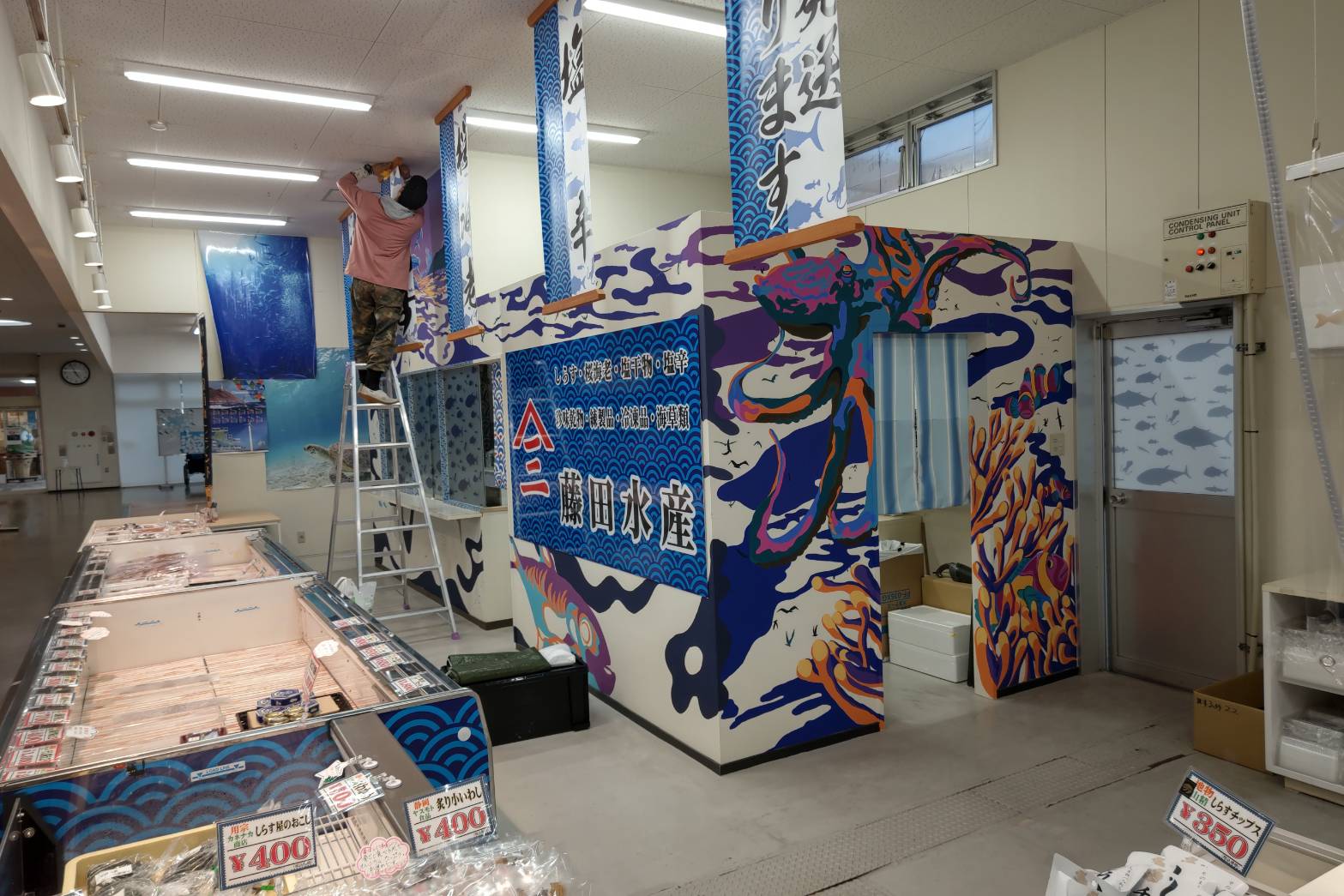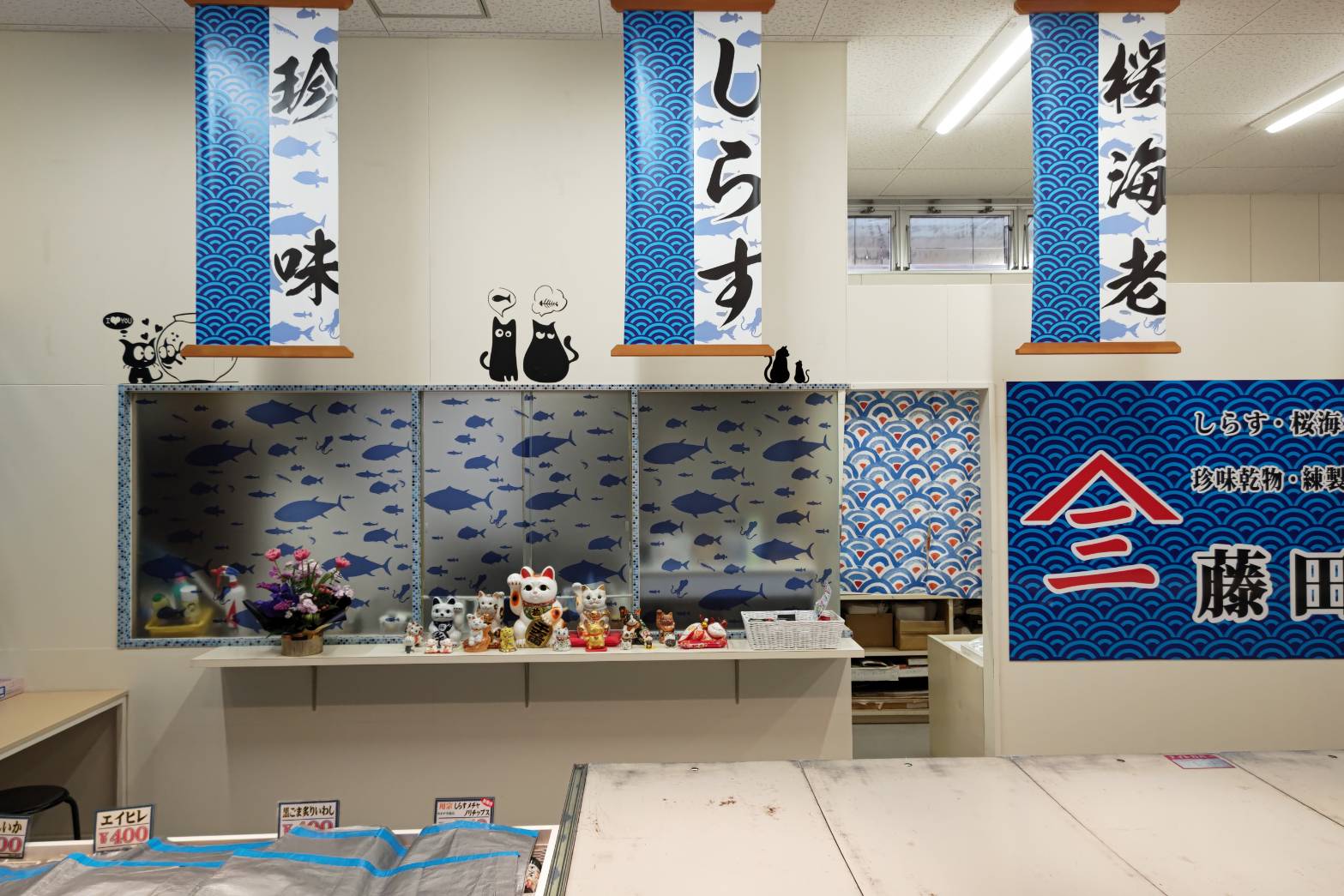 去年の末にしらすの水揚げが少なくなってから、しらす干は1種類しか置いてきませんでしたが、今期始まってから順調にしらす干を作ることができて、最近やっと3種類(上、並、徳用)並べることが出来るようになりました
