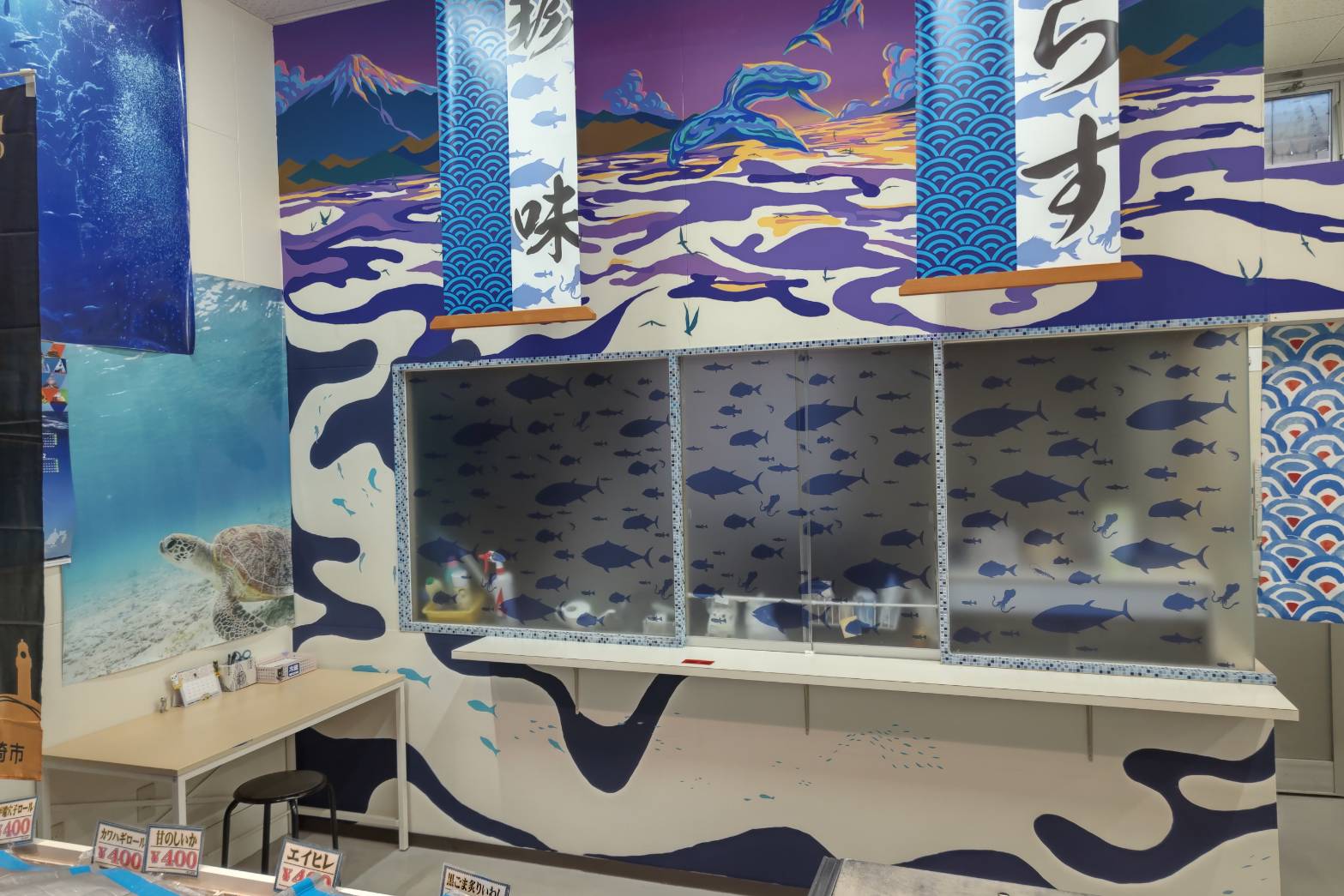 魚に灯台に富士山と御前崎のシンボルが次々と登場します。