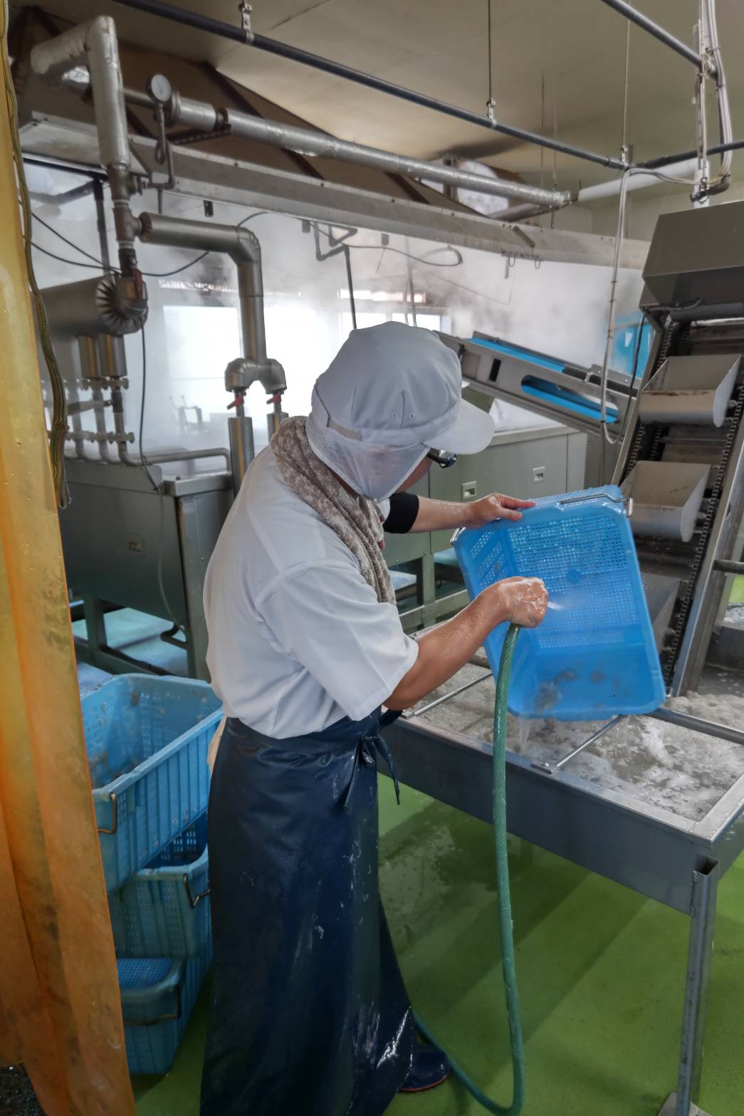工場の中はお釜に火をいれると湯気と熱気で一段と蒸し暑くなります。