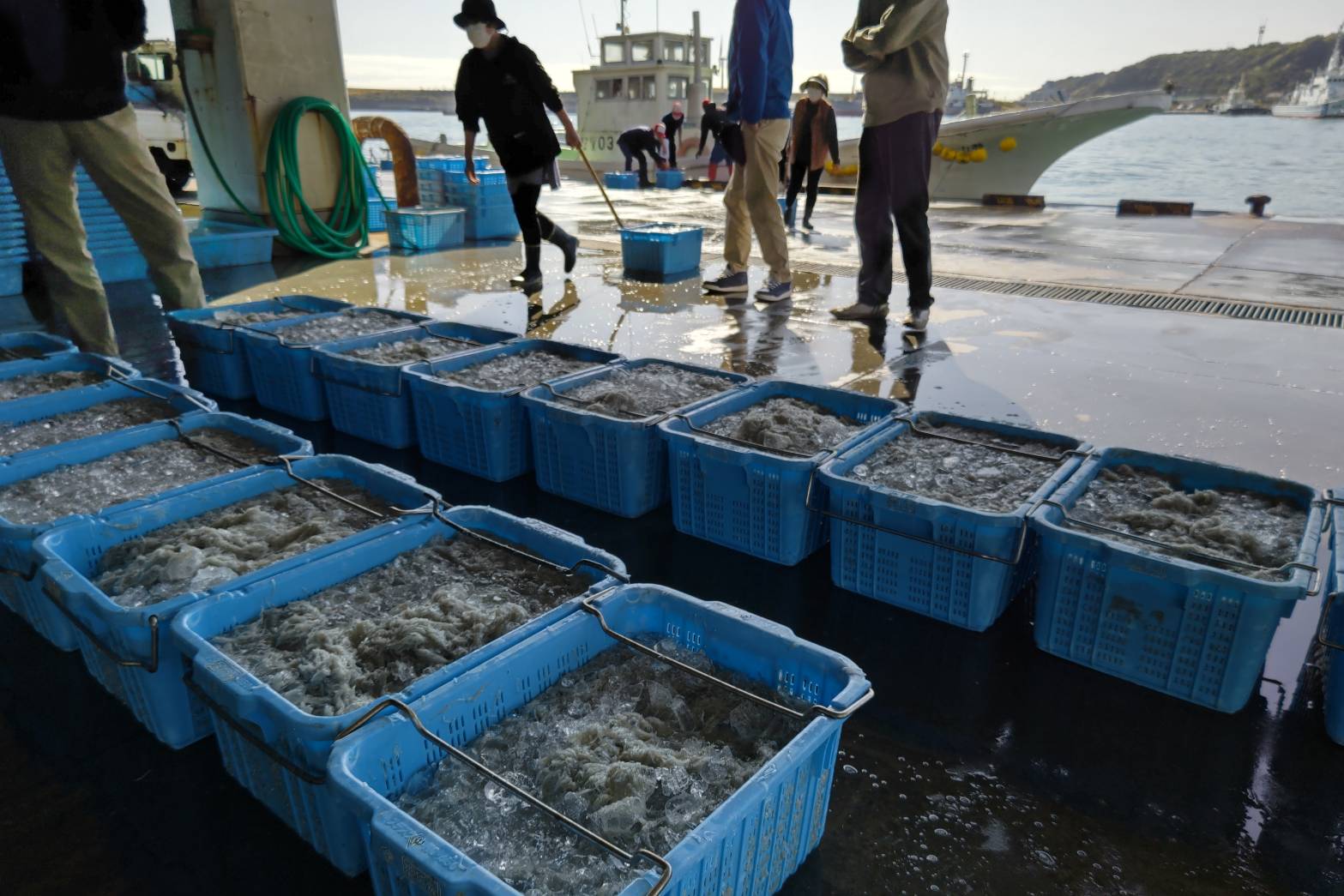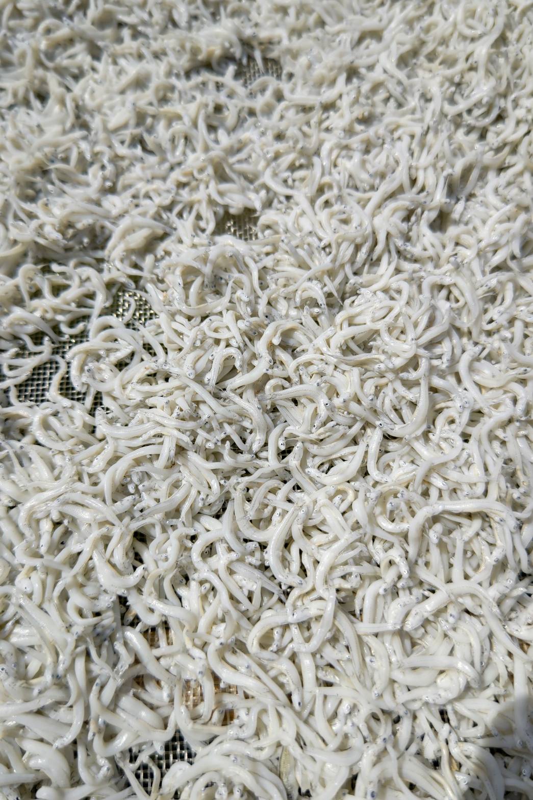 水揚げは少ないですが段々と筋が細かくなり、いい釜揚げしらすが出来そうです