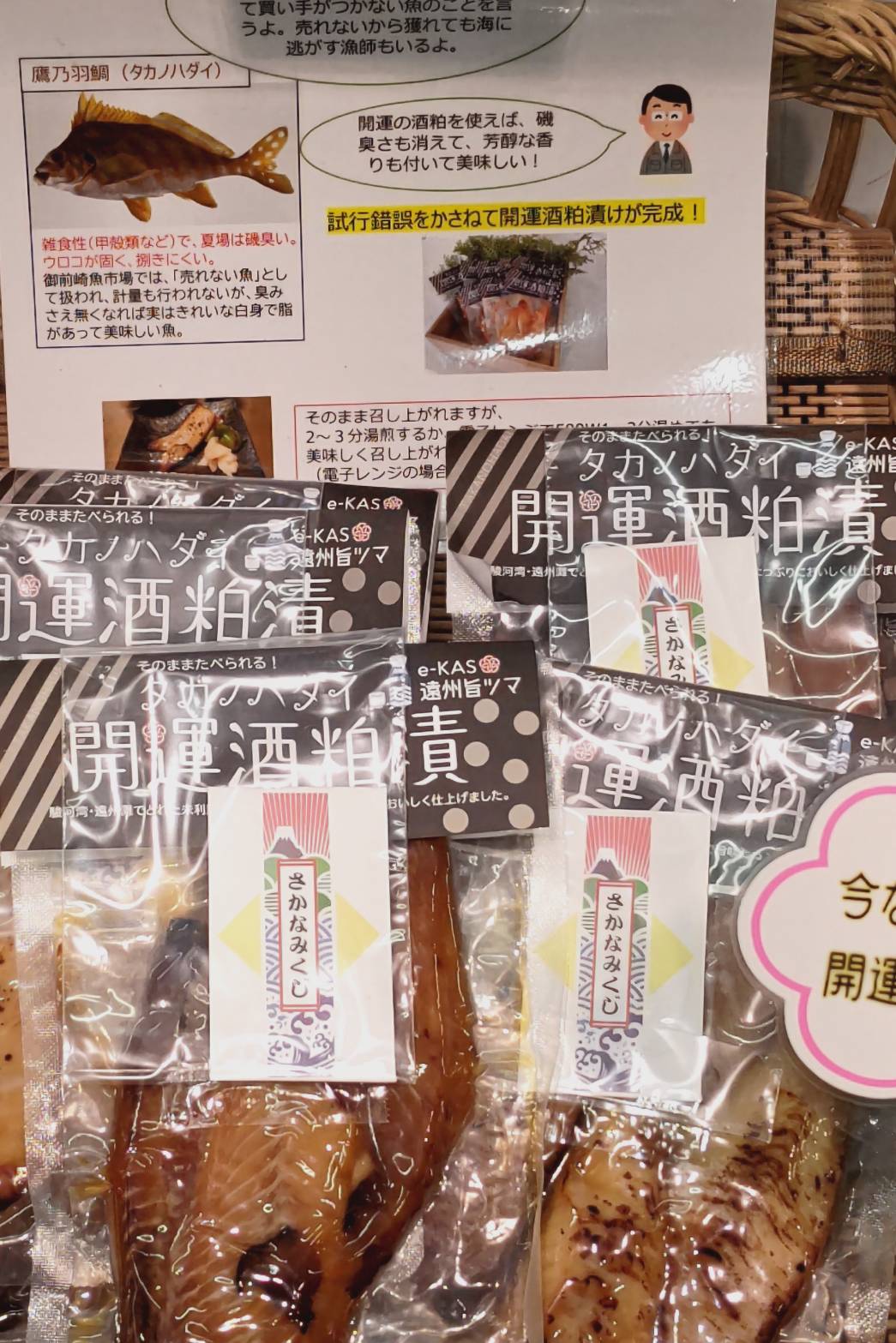 ウチの店で扱っている地元の南駿河湾漁協で作っている「タカノハダイ開運酒粕漬」。