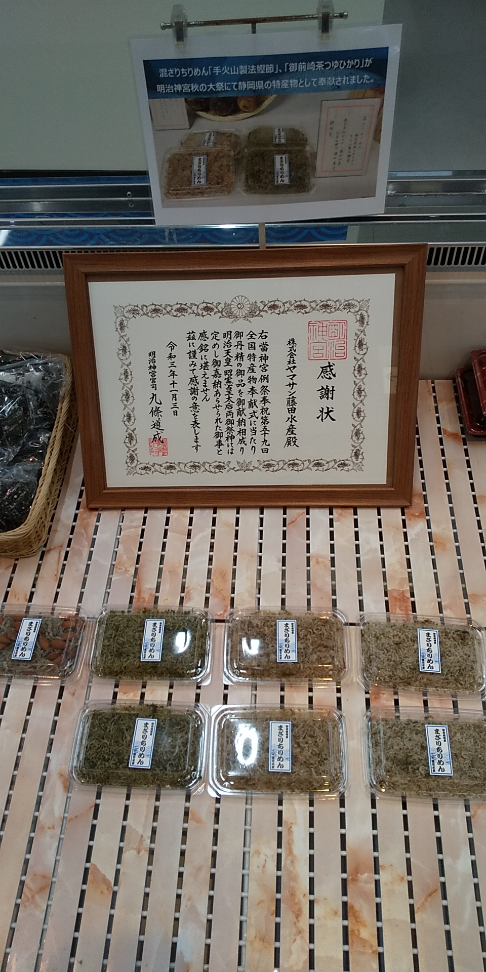 奉献した混ざりちりめんは店でも販売してます。