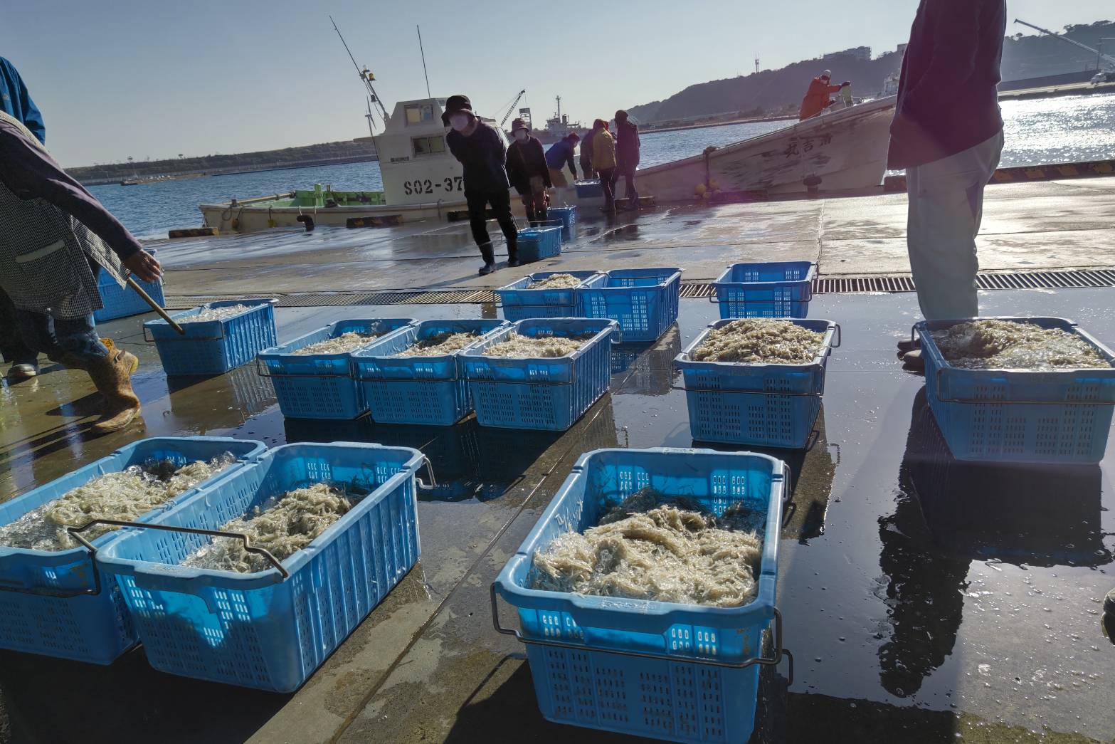 せっかく来てくれたのに大した水揚げじゃなくて残念でしたが、細くて綺麗なしらすがまとまって揚がり、おかげで上物のしらす干しが出来ました。