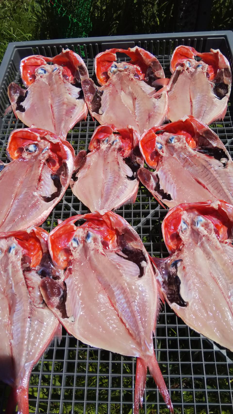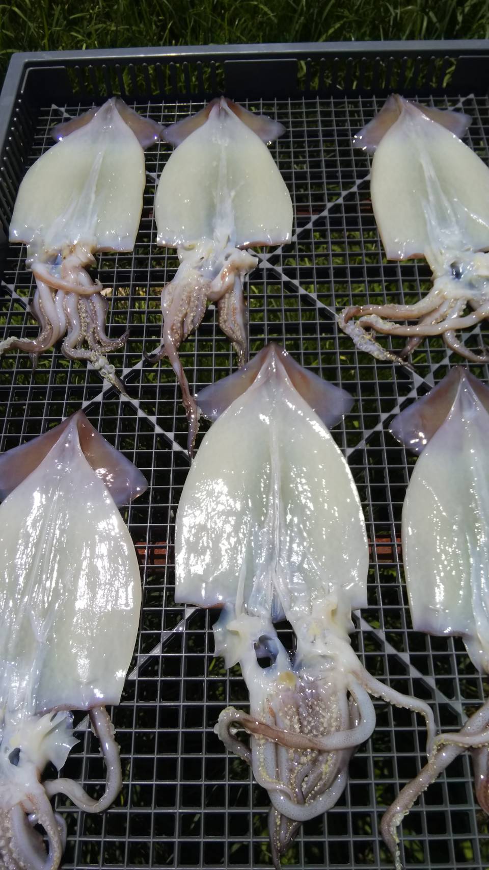 今日はしらす漁が休みになったので、金目鯛とスルメイカを開いて干物を作りました。
