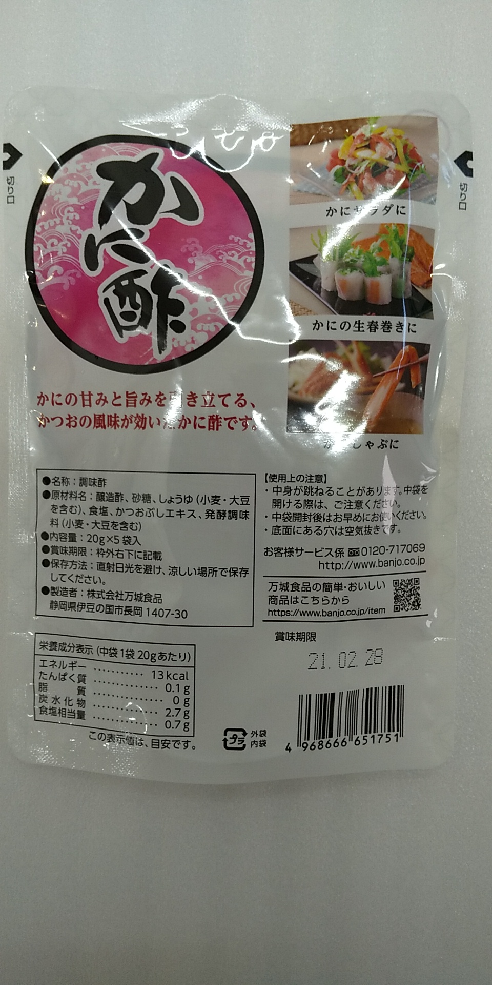 これからカニの季節になってきますので、万城食品さんの美味しい【かに酢】でかにしゃぶなど如何でしょうか?