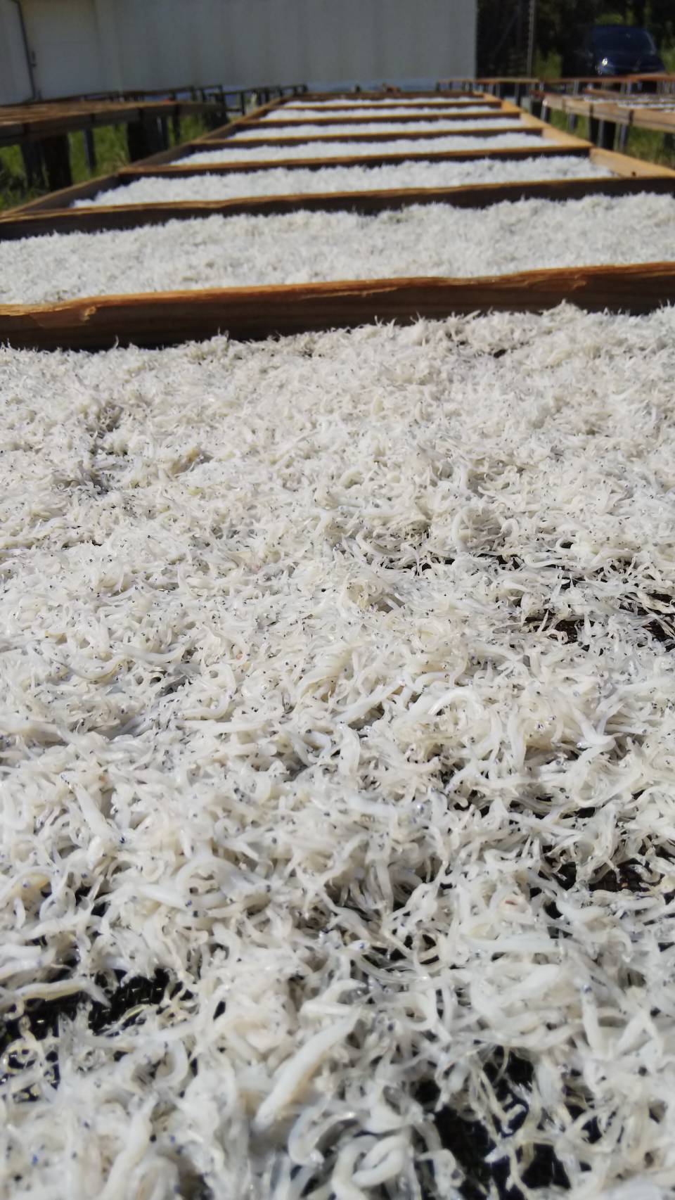 だから水気を吸ってくれて強度も変わらない木で作った箱は釜揚げしらすの保管用の入れ物として、とても優れた代物なんです❗️