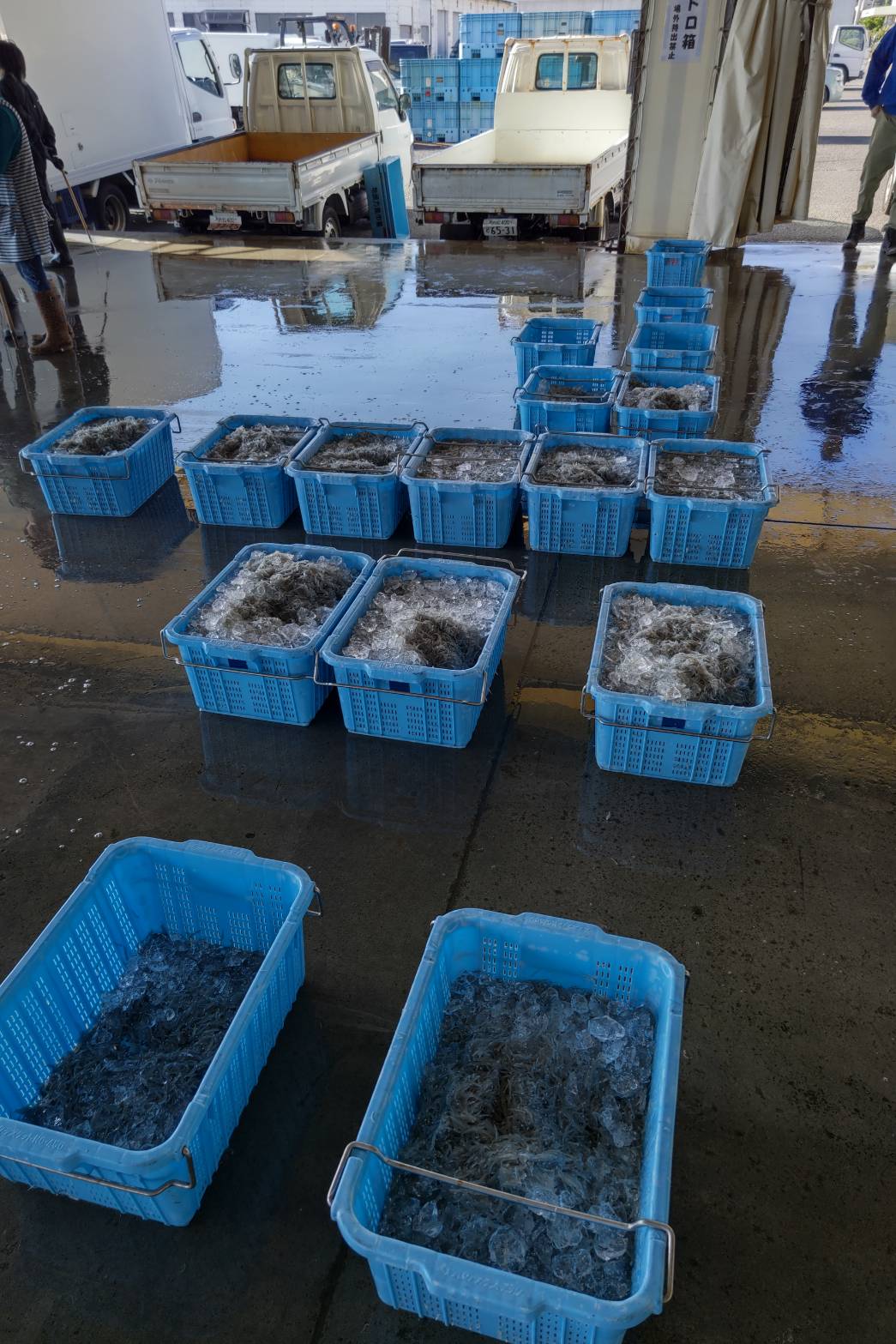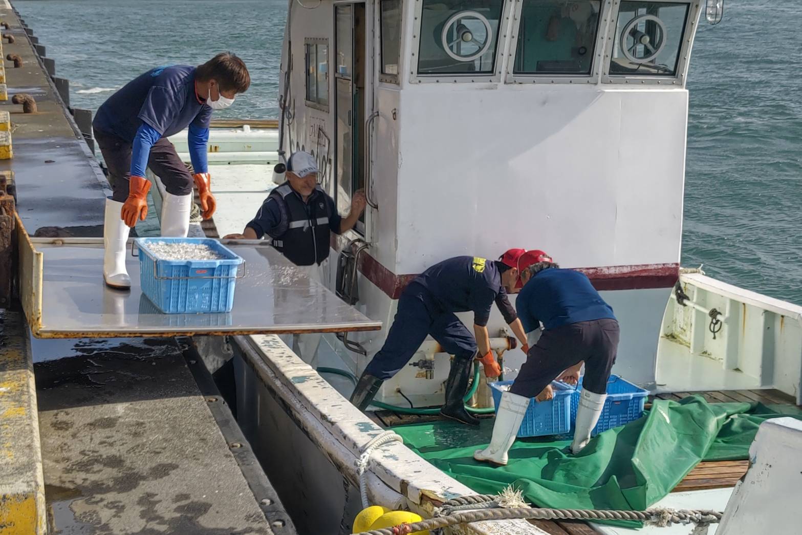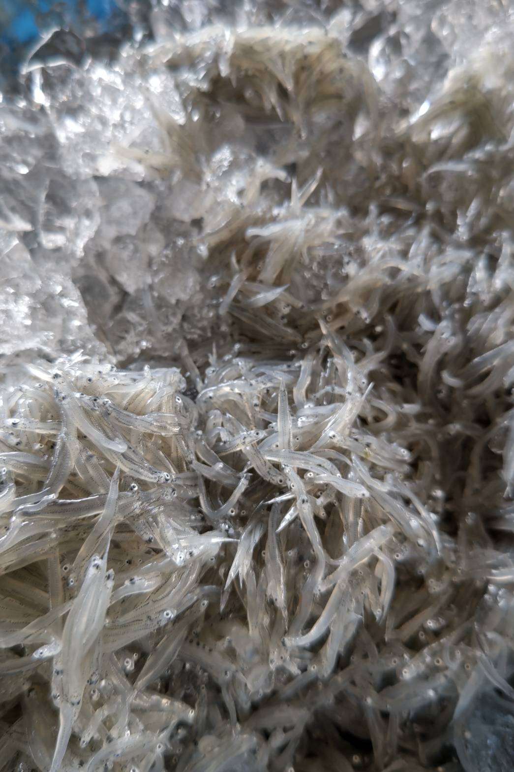 画像だと伝わりづらいけど、結構黒い色のしらすが獲れてます。