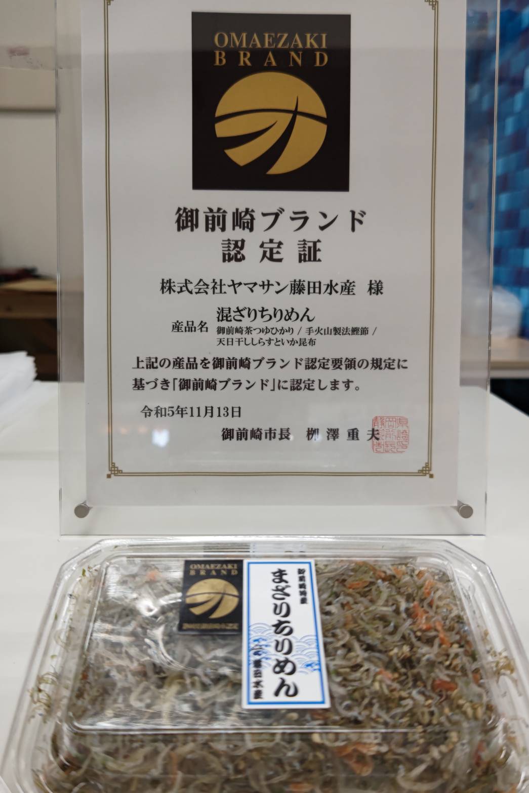 ウチのオリジナル商品「まざりちりめん 天日干ししらすといか昆布」が御前崎市の「御前崎ブランド」に認定されました