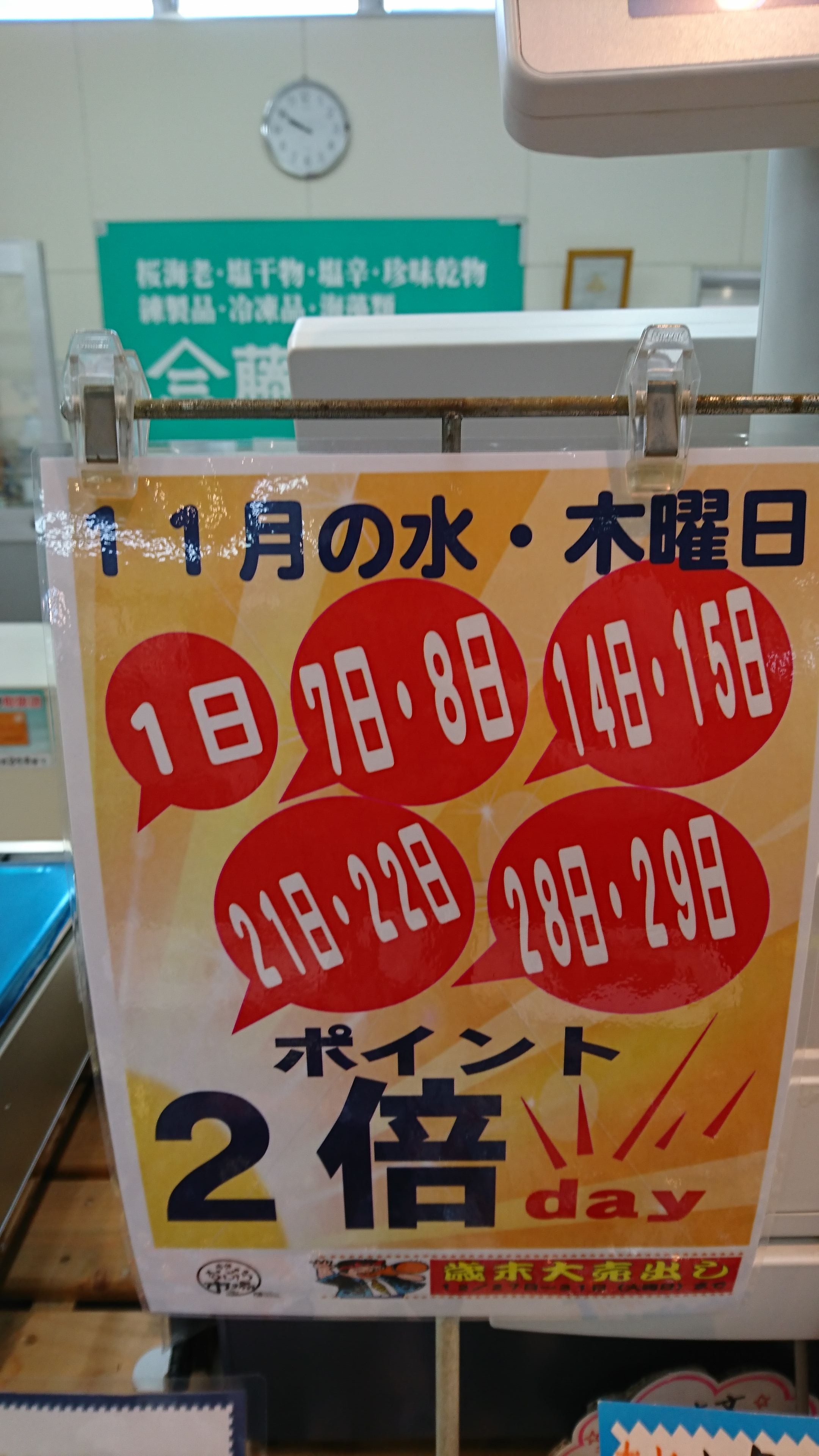 11月の毎週水・木曜日はポイント2倍DAYになります!