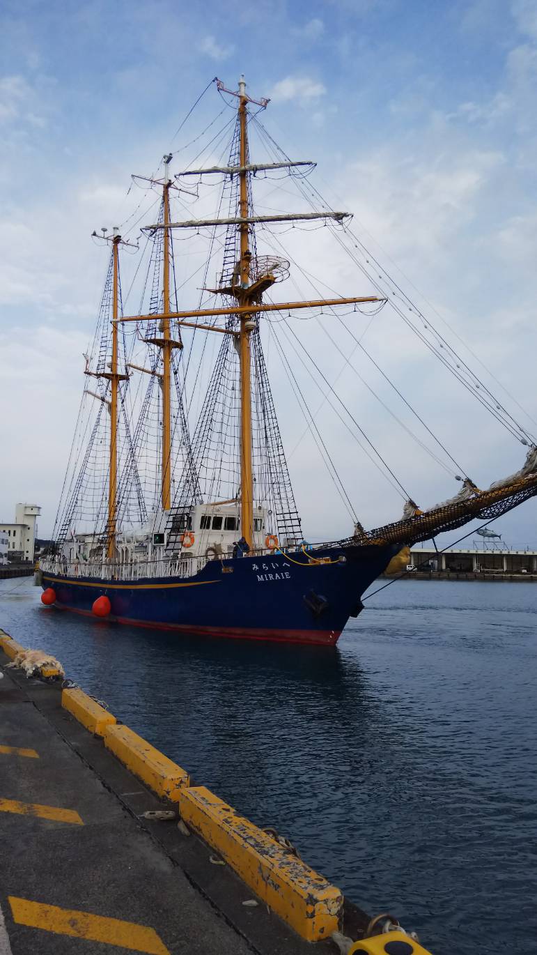 帆船「みらいへ号」が補給のため今朝、御前崎港に立ち寄りました。