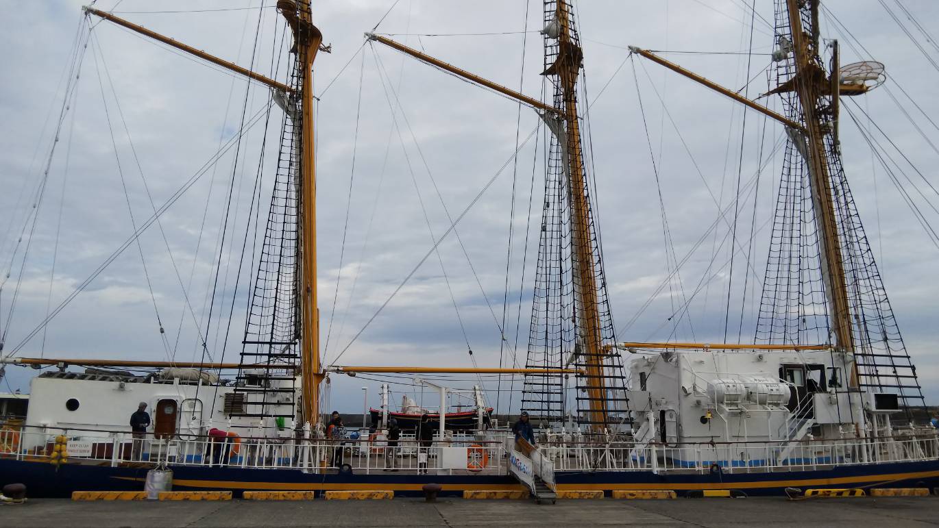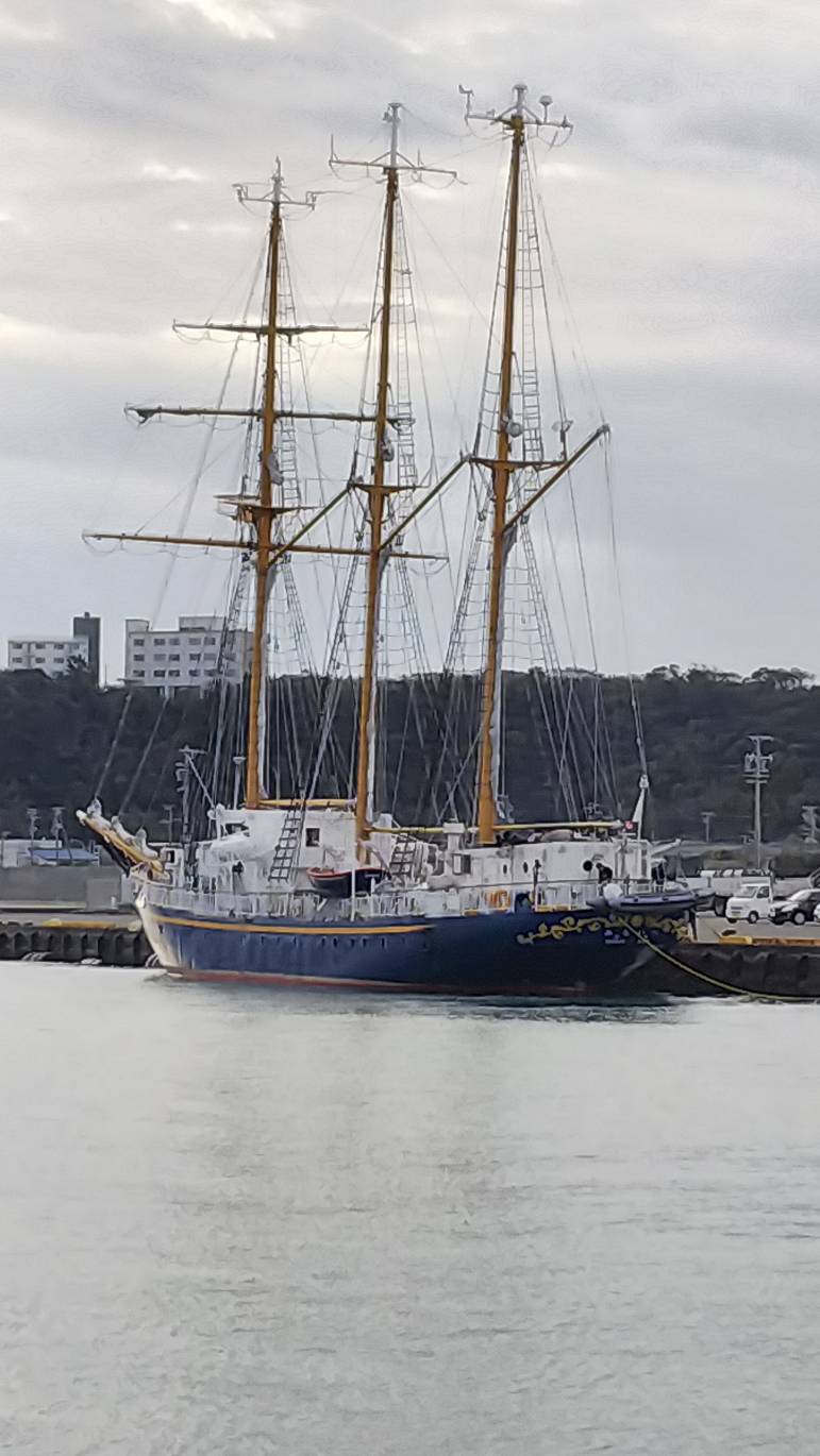 見学していたようで今日は港に帆船が来ていたためか精鋭の方たちで