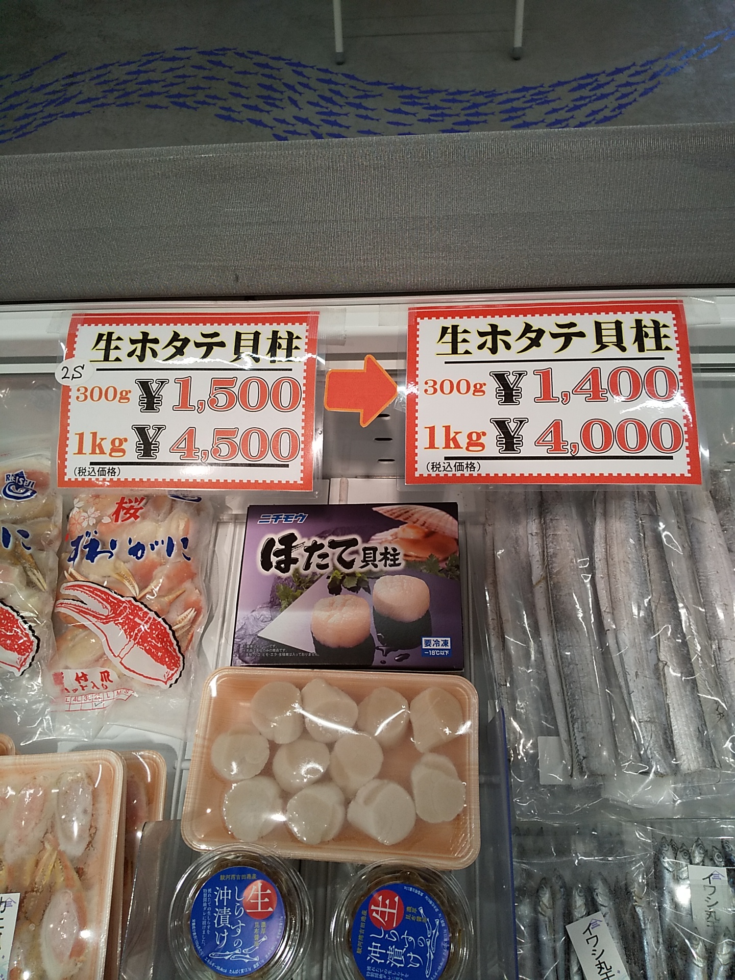 帆立貝柱値下げしました。