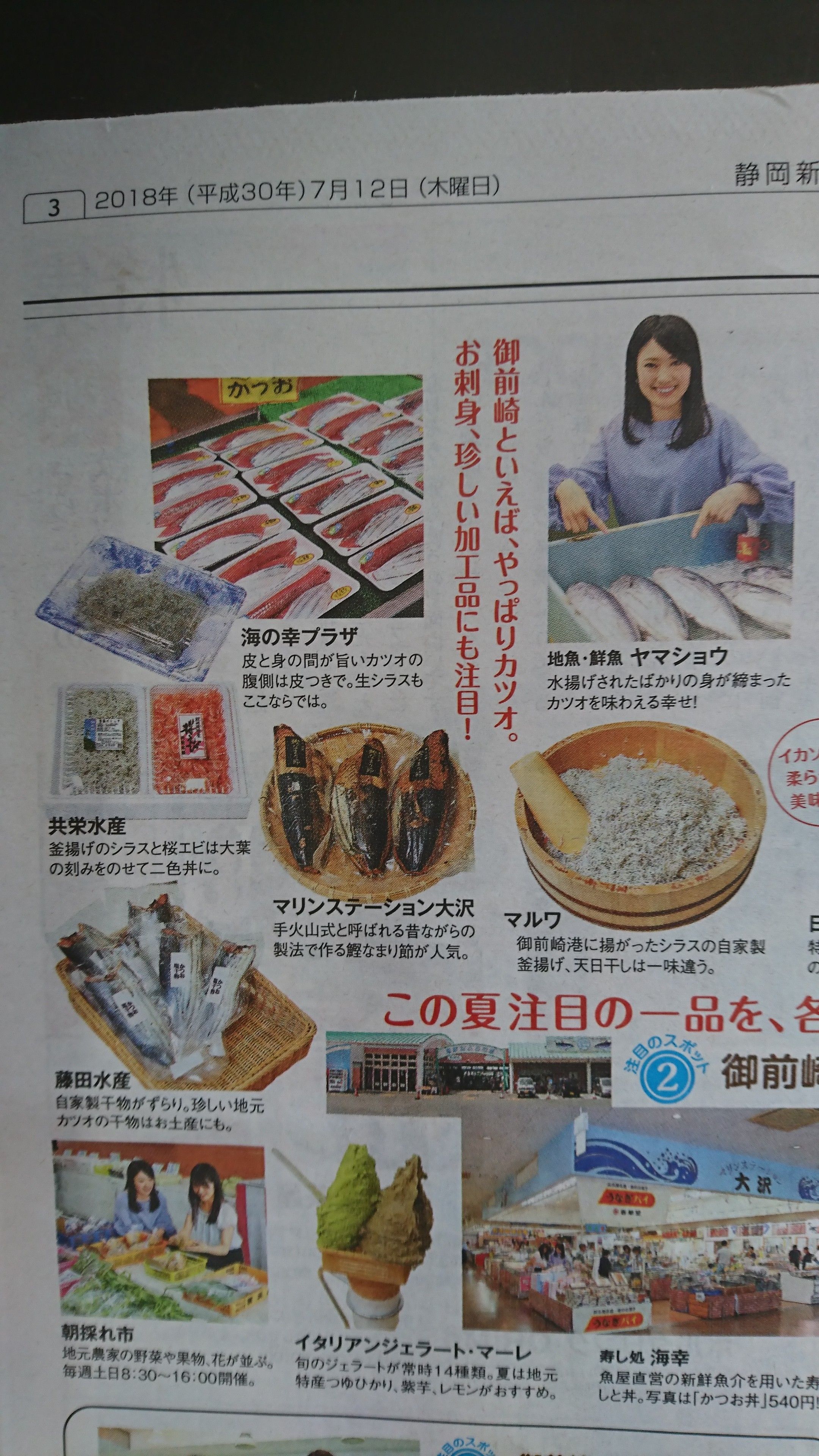 7月12日号の【静岡新聞びぶれ】にてヤマサン藤田水産が紹介されました!
