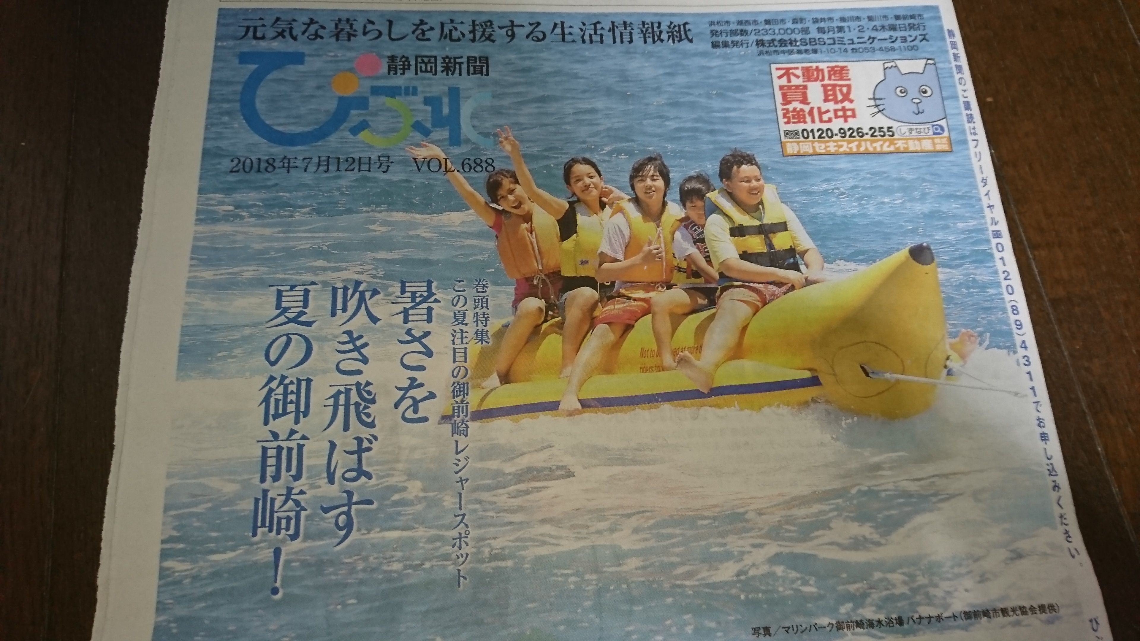 表紙はマリンパーク御前崎海水浴場で夏真っ只中!といった様子でババナボート
