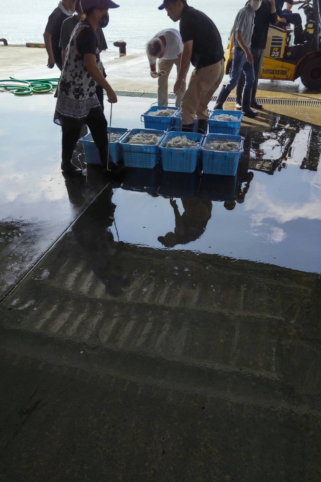 3日ぶりの出漁だったのに籠の数と仲買人の数か同じくらい