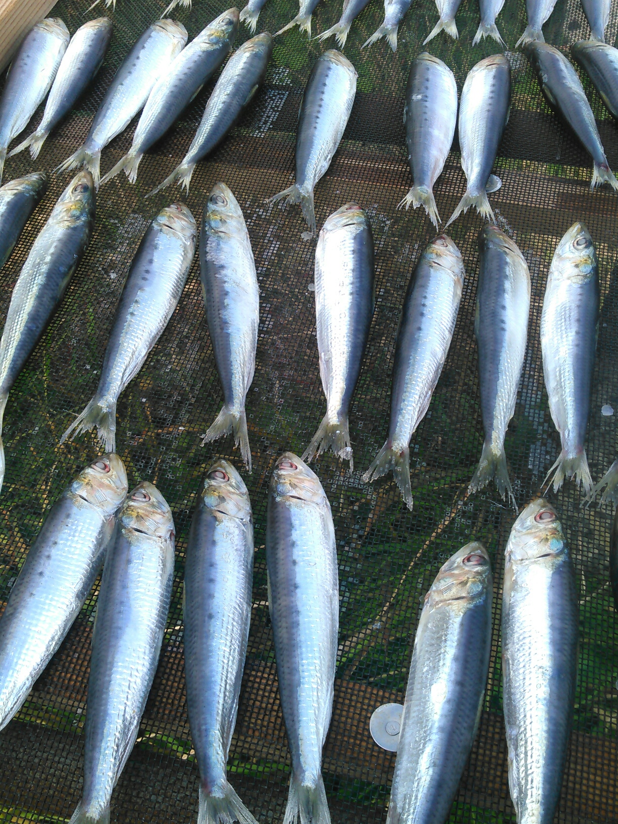 今日はイワシの丸干しを作りました。ちょうど良いサイズのイワシが水揚げされました。